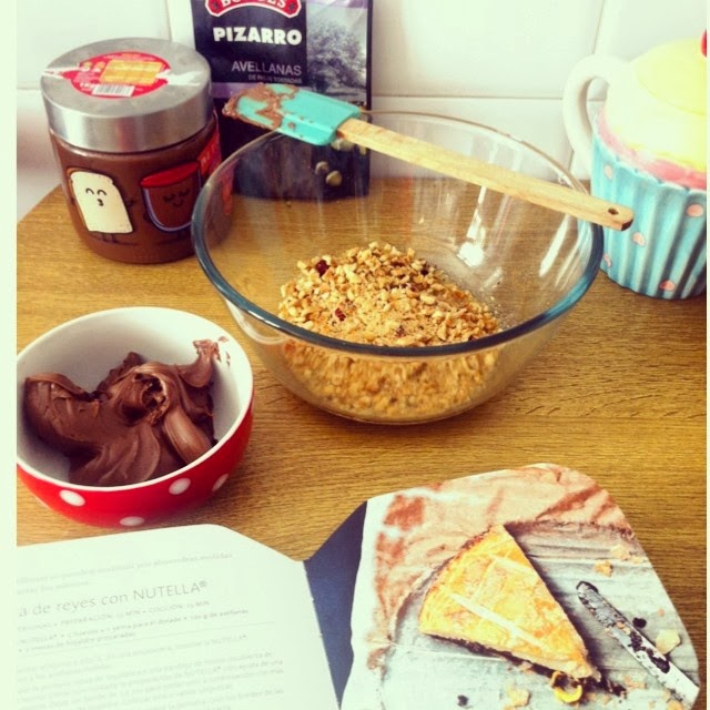 Preparando una rica tarta de nocilla, hojaldre y avellanas, ñam !