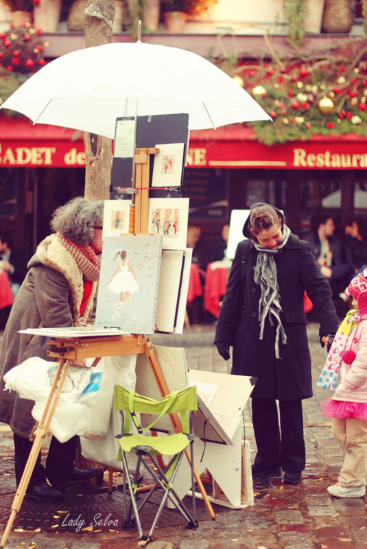 Nosotras no nos hicimos ningún retrato, sería una pena que luego se nos estropeara por la lluvia, pero si que me di un pequeño capricho (la verdad que aluciné con el precio, creo que habían sido sólo 15€!) y me compré este precioso cuadro en blanco y negro